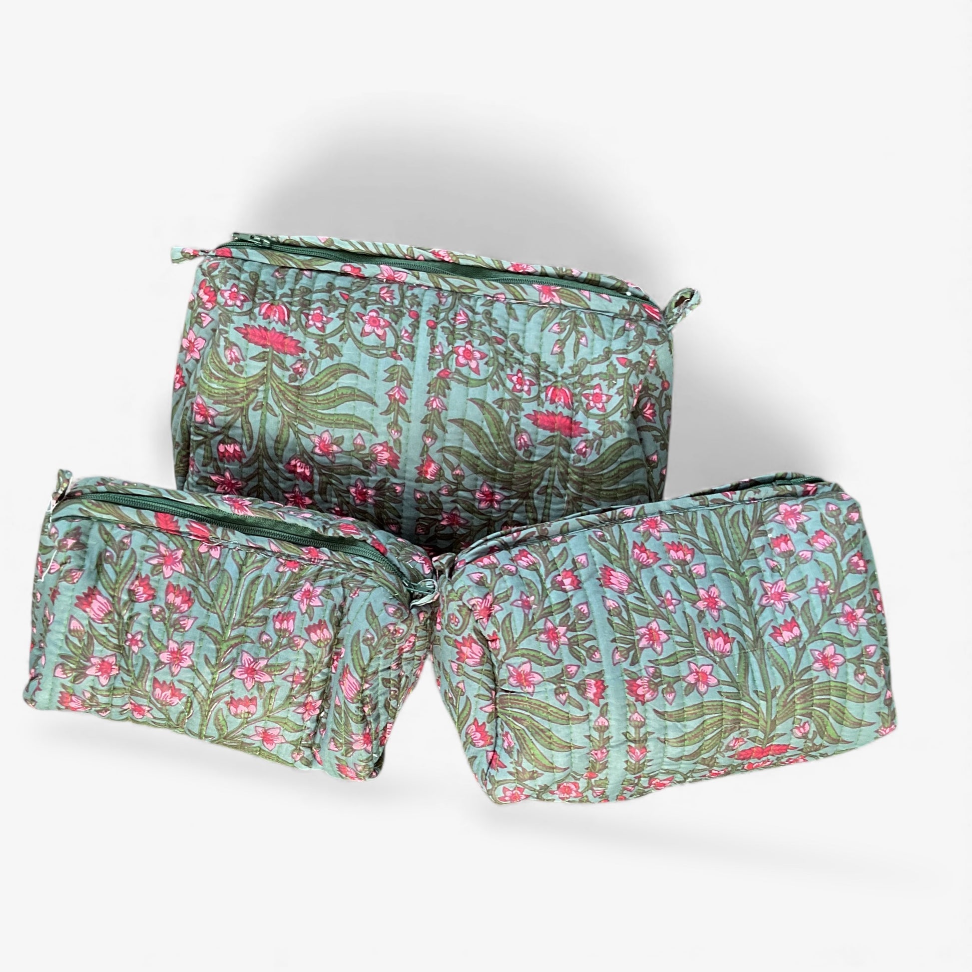 Block Printed 3-Piece Cosmetic Bag Set